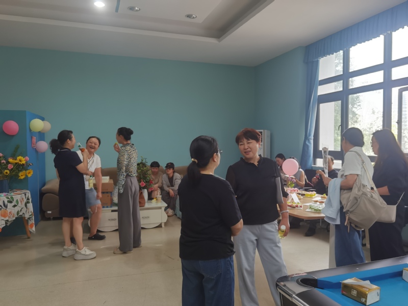 老师们从烈日炎炎的室外来到清凉舒适又气氛热烈的活动室,身心放松,愉悦之情溢于言表。大家挑选自己喜欢的小茶点,三五成群,边吃边聊。暑期活动的分享、开学工作的安排、学期目标的分享都成了老师们畅谈的内容,同时也有新学期工作压力的释放。